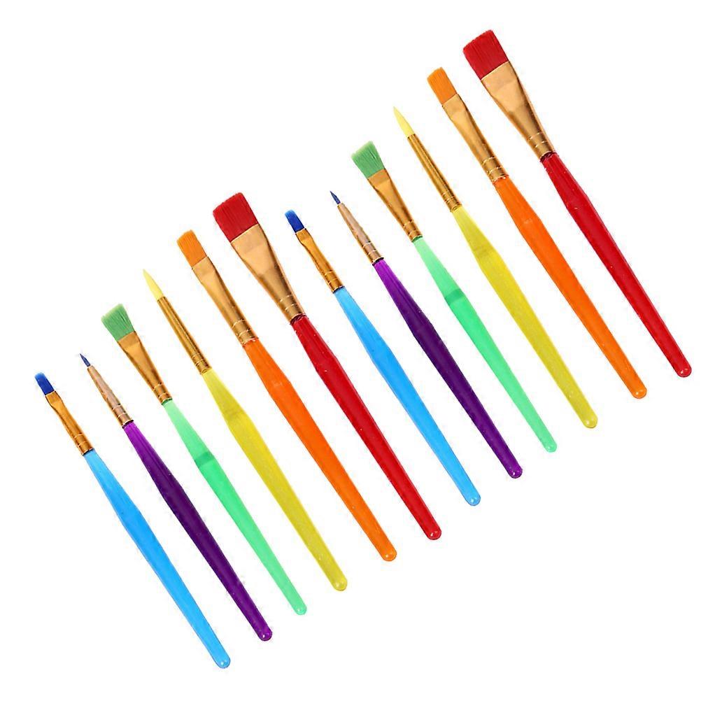 12pcs Colorful Painting Brushes for Hair Art, Watercolor, Oil & Gouache – Easy Grip Handles for Beginners, Age 3+