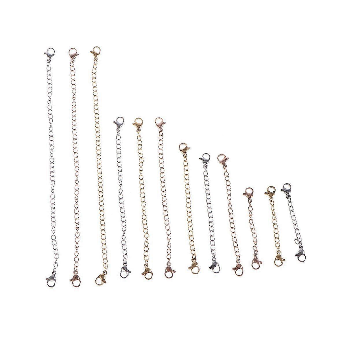 12PCS Stainless Steel Lobster Buckle Necklace Extension Chain with Lobster Clasp at Both Ends for DIY Jewelry Making Silver Golden Rose Gold
