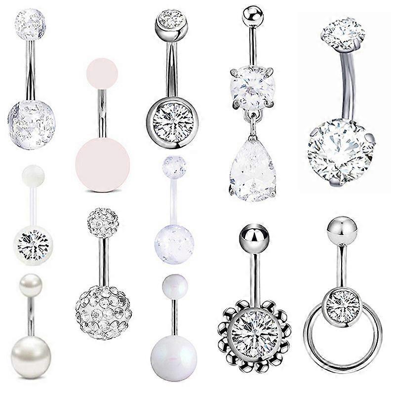 12Pcs/Set Crystal Belly Button Ring Fashion Woman Navel Body Piercing Jewelry