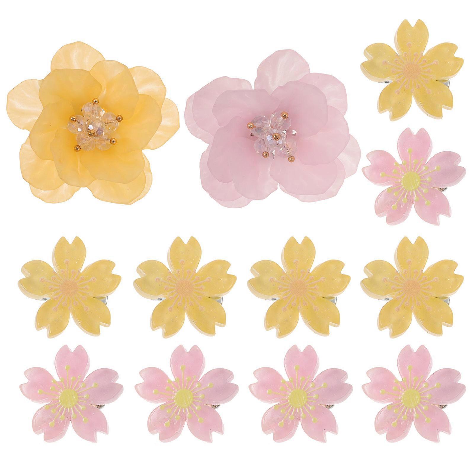 12pcs Floral Hair Clips Set Cherry Blossom Hairpins for Lightweight Safe Hair Barrettes Women's Hair Decorations with Pink and Yellow Flowers