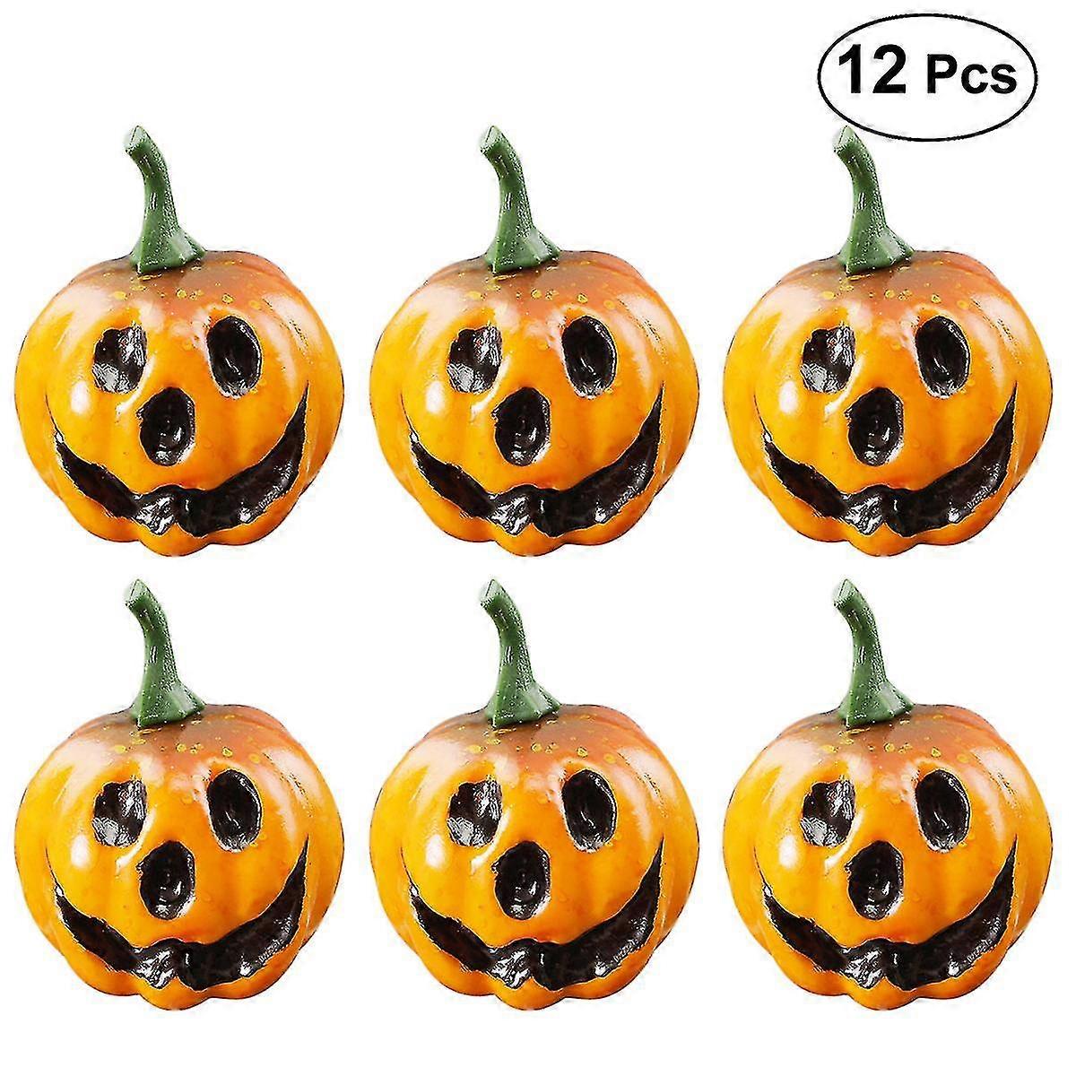 12pcs Simulation Lifelike Artificial Small Pumpkins Carved Scary Face Table Centerpiece Halloween Decoration Party