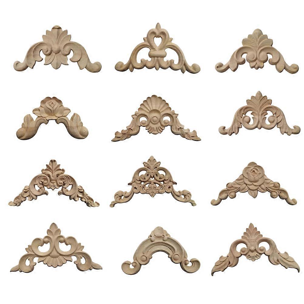 12PCS Solid Wood Carved Corner Onlay Unpainted Applique European Style Door Cabinet Decoration