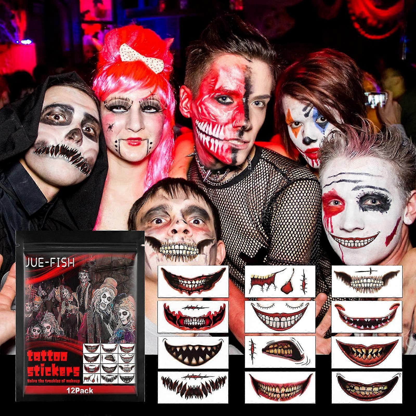 12pcs Big Mouth Temporary Tattoo for Halloween Prank Makeup and Decorations