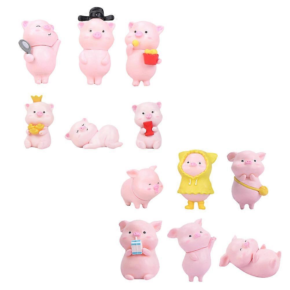 12pcs Assorted Pig Figurines for Micro Landscaping Decor – Cute Mini Pig Adornments for Tabletop, Garden & Photography Props
