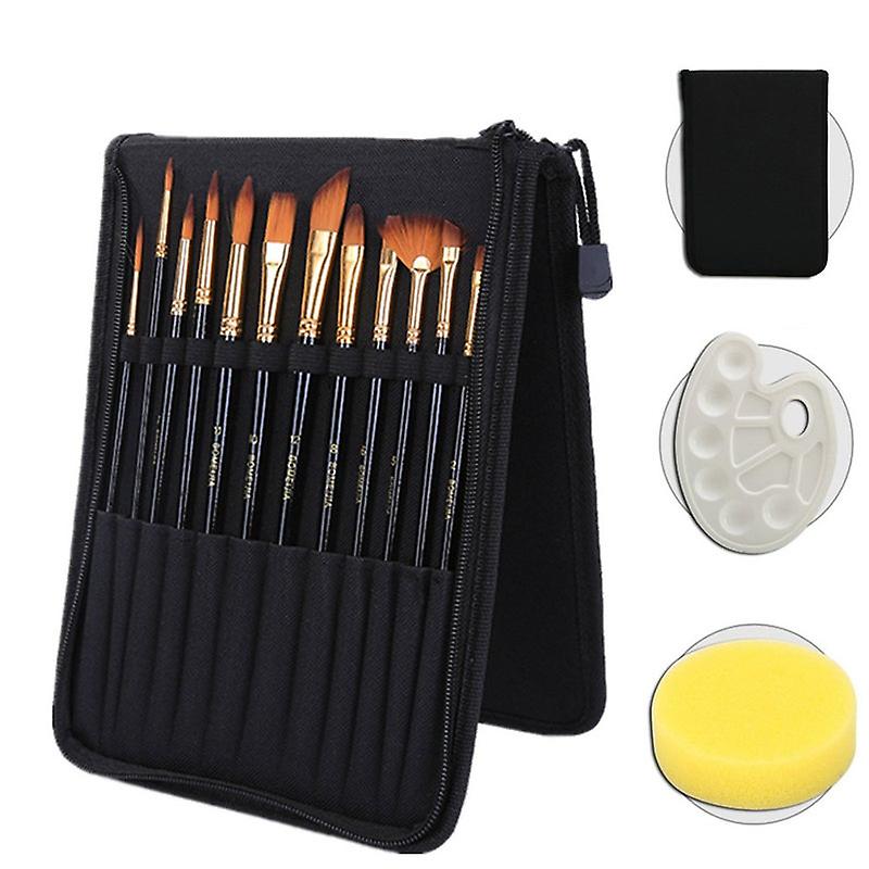 12Pcs Paint Brush Set Palette With Brushes Carrying Case For Watercolor Oil Acrylic Painting Artists Brushes