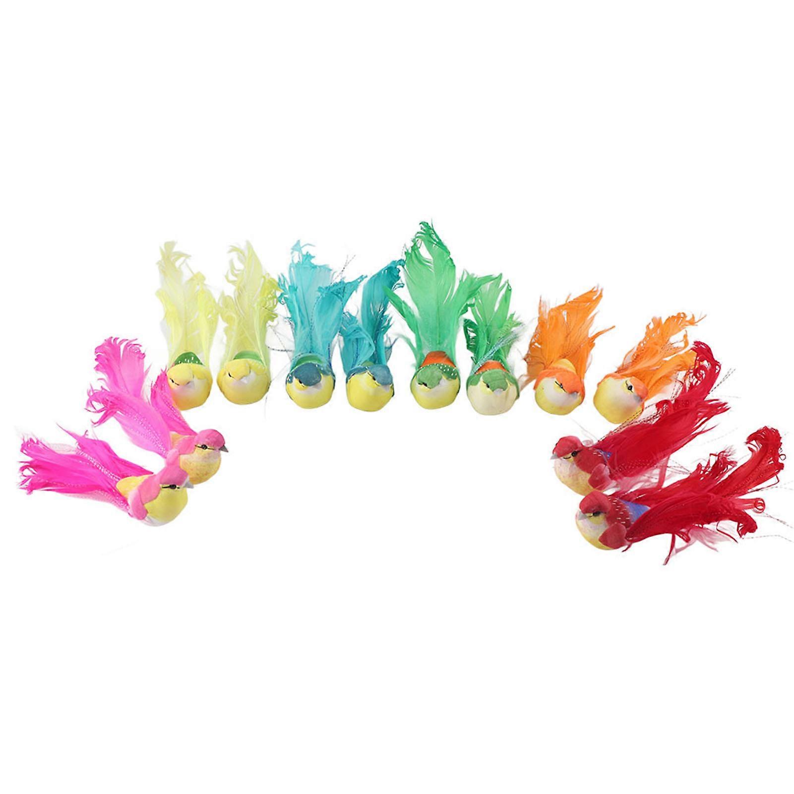 12Pcs Artificial Bird Decor Simulation Bird with Clip Decoration Ornament for Home Garden