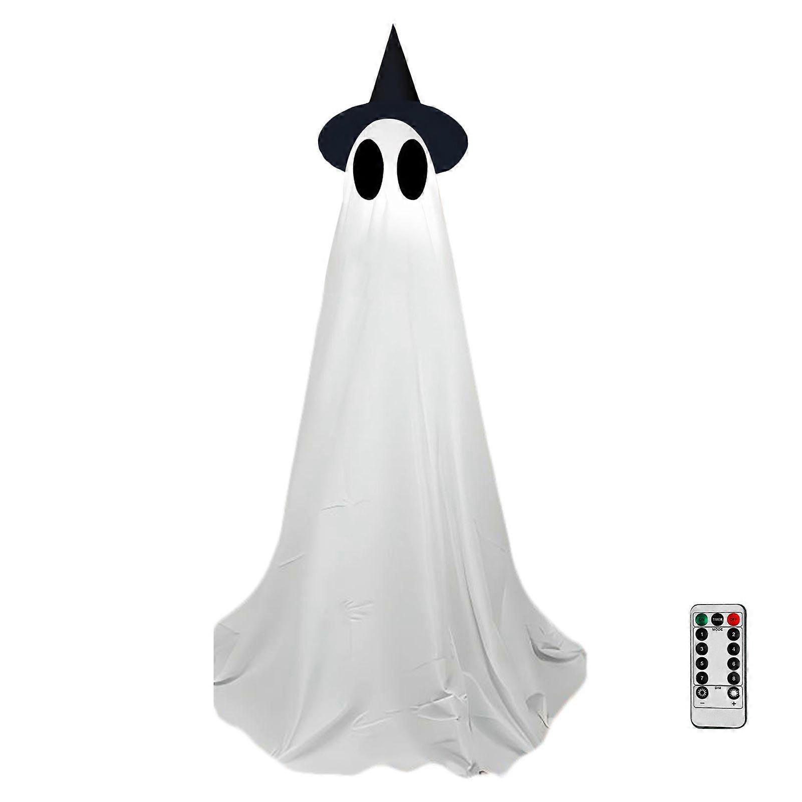 1/2Pcs Halloween Ghost Figurine Standing Ghost Statue with Witch Hat Outdoor Glowing Decoration with Remote Control for Porches Yards Gardens Lawn