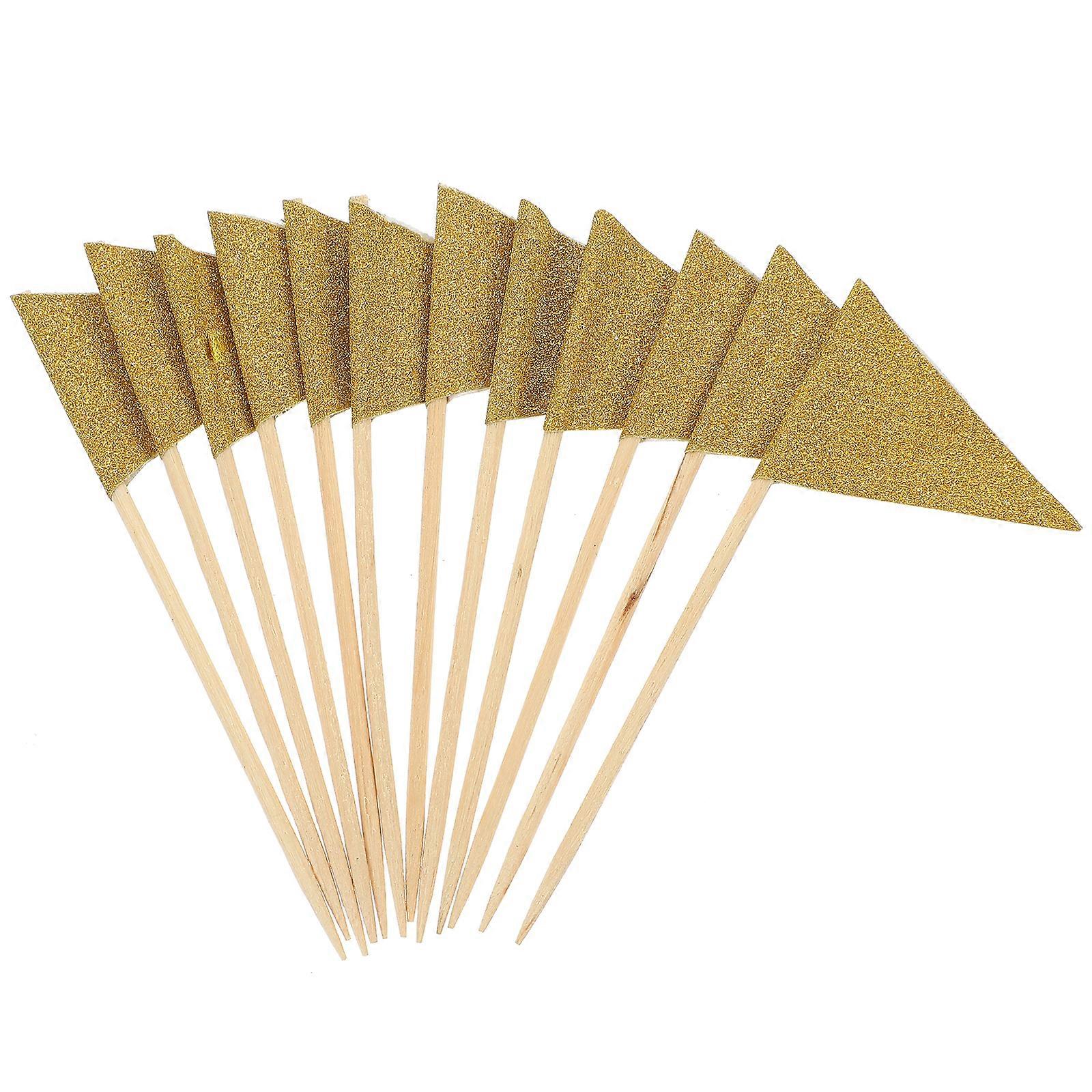 12Pcs Toothpick Food Flags Cupcake Toppers Fruit Salad Cocktail Sticks Cupcake Toppers Flags Golden