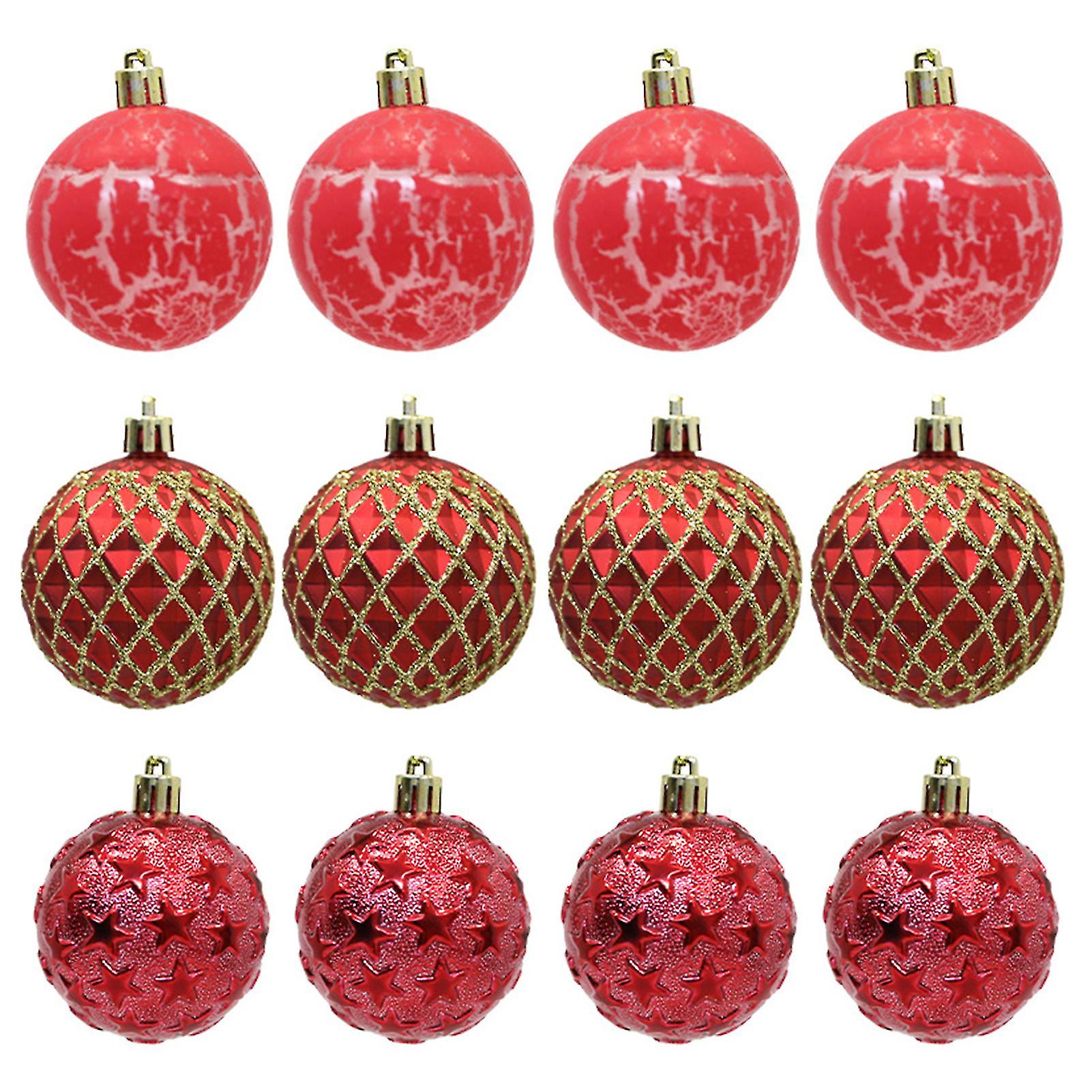 12pcs Christmas Ball Pendant Fine Workmanship Easy To Hang Delicate Detail Plastic Shiny Christmas Tree Balls Ornament Set Parties Supplies