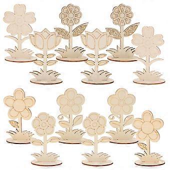 12Pcs DIY Blank 3D Flower Decor Unfinished Wood Flower Cutouts Unpainted Wooden Flowers for Crafts