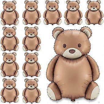 12 Pcs 35 Inch Brown Bear Balloons Cartoon Bear Foil Balloons Matte Big Birthday Balloons for Home Decor Jungle Animal Farm Safari Zoo Woodland Themed