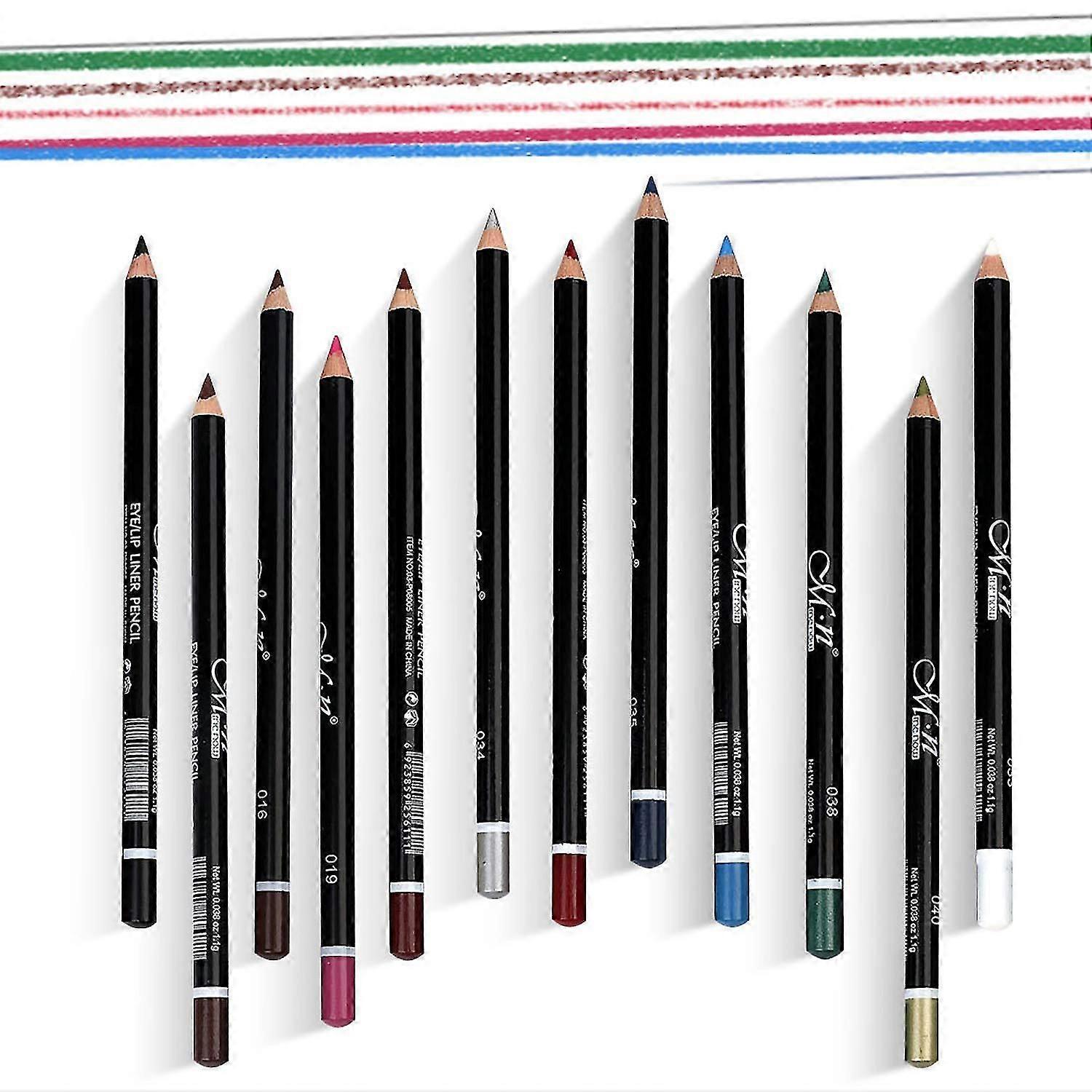 12 Assorted Colors Gel Eyeliner Pencil Set Matt Smooth Waterproof Natural Long Lasting Eyebrow Lip Liner Pencil Cosmetics Makeup Set Kit Tool, Mix Col