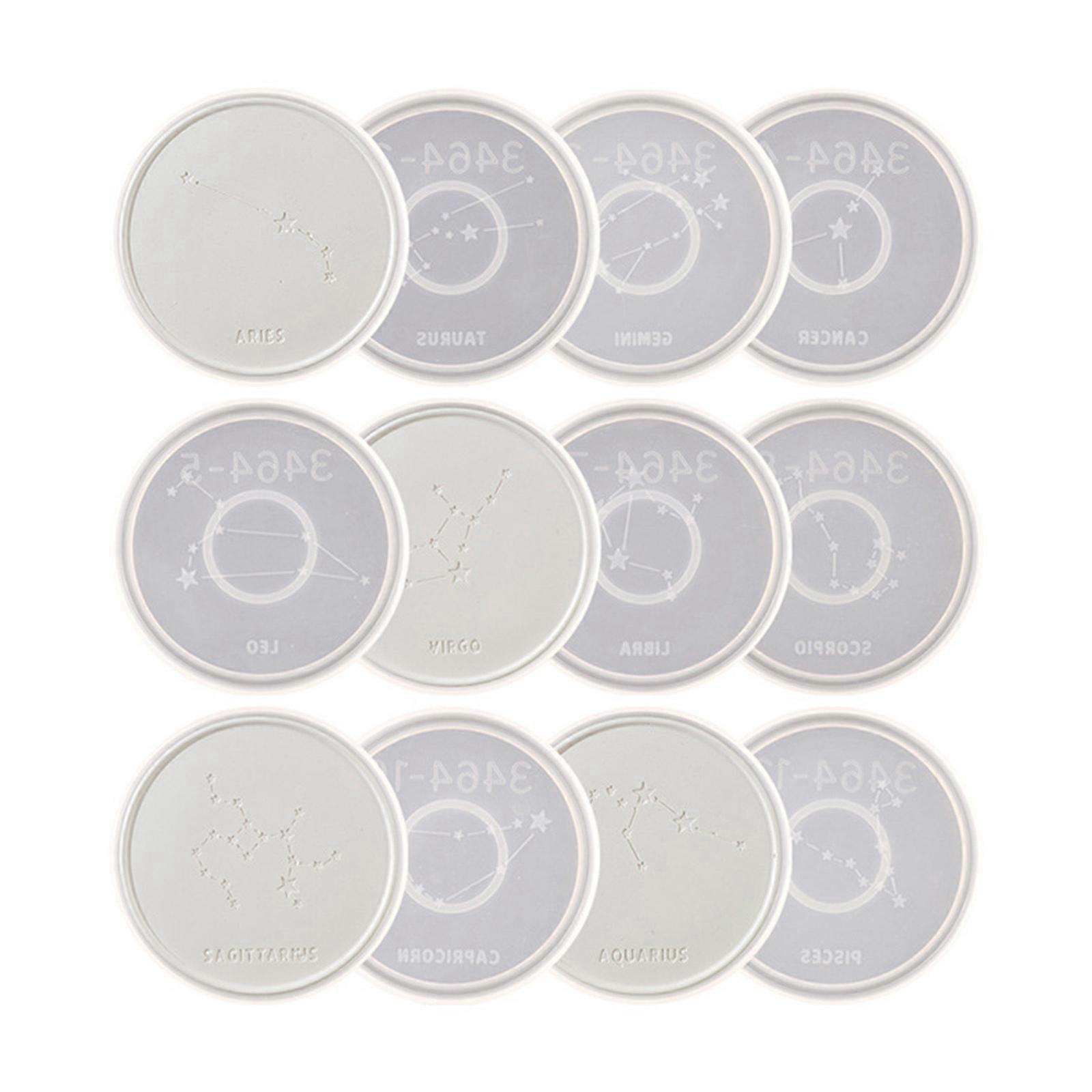 12 Constellation Coaster Molds 12Pcs Silicone Epoxy Resin Tray Mould for Handmade DIY Plaster Candle Soap Aromatherapy Mold