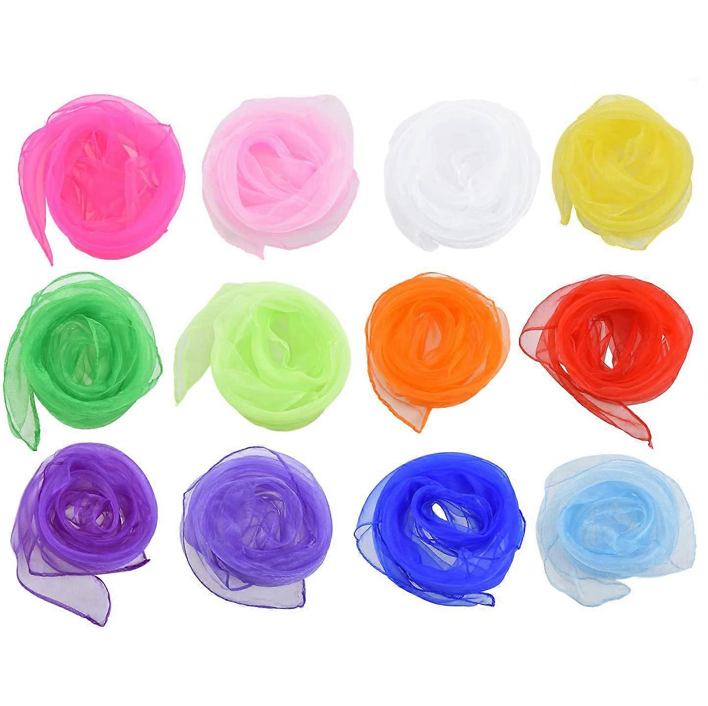 12 piece Square Dance Scarves,Juggling Scarf Props Magic Trick Silk Scarves Music Movement Scarf(random color)