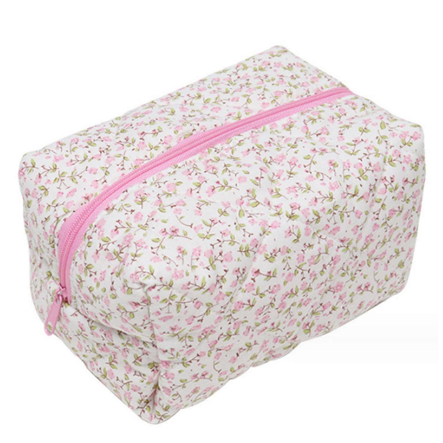 1/2 Pcs Cosmetic Bag Flower Print Zipper Closure Large Capacity Portable Lipstick Lotion Earphone