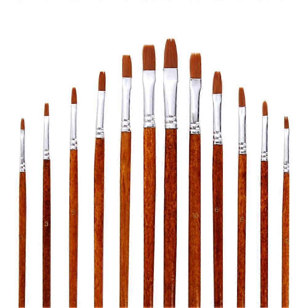 12Pcs Wood Handle Nylon Hair Gouache Brushes Set Watercolor Oil Painting Brushes Painting Tool