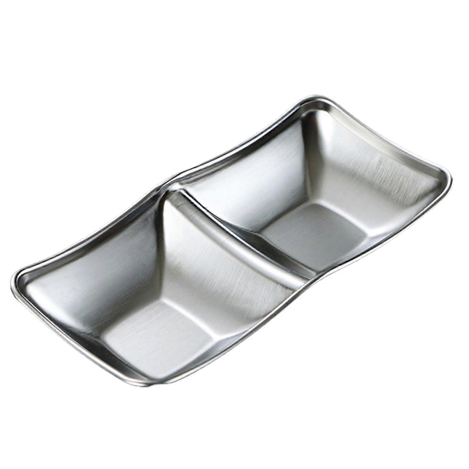 1/2/3 Grids Stainless Steel Seasoning Dish Korean Metal Barbecue Sauce Dipping Dish Plate BBQ Restaurant Kitchen Tableware