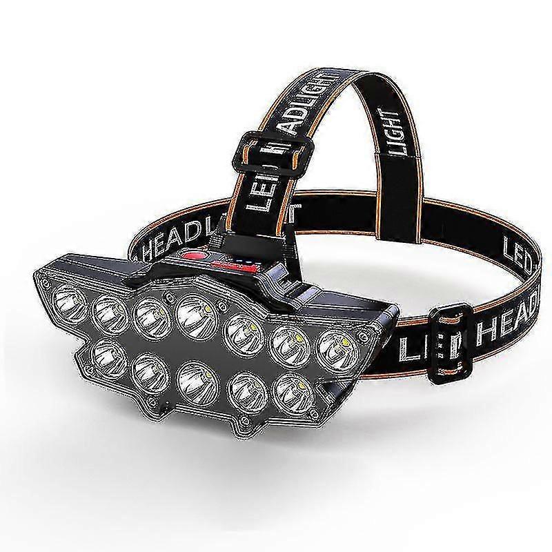 12led Head-mounted Flashlight Headlight Outdoor Night Fishing Waterproof Rechargeable Miner's Lamp Strong Light(Black)