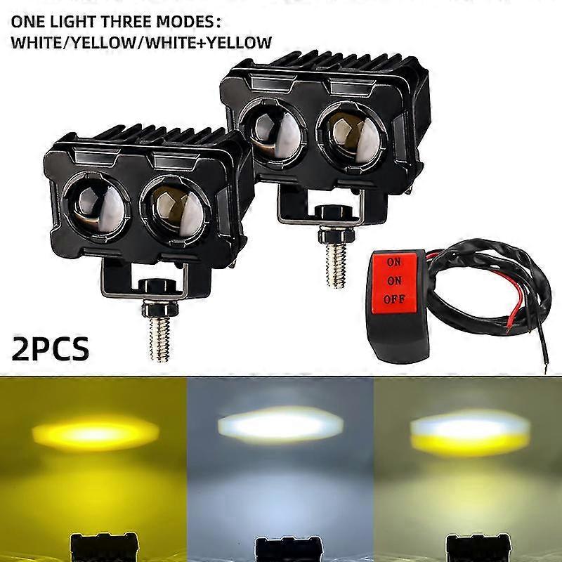 1/2pcs Motorcycle Mini Driving Light Headlight Dual Color Atv Scooter For Auxiliary Spotlight Lamp Moto Fog Light Accessories