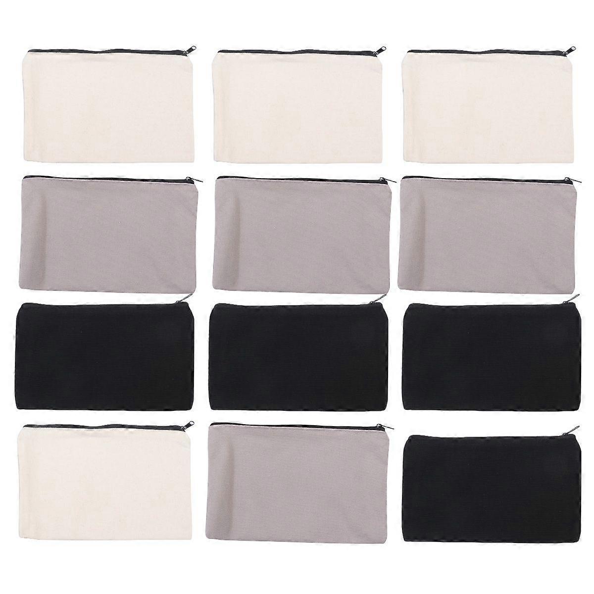 12PCS Canvas Zipper Pouches Cosmetics Bags Pencil Pen Stationery Bag Multifunction Storage Pouches (Black Beige Grey)