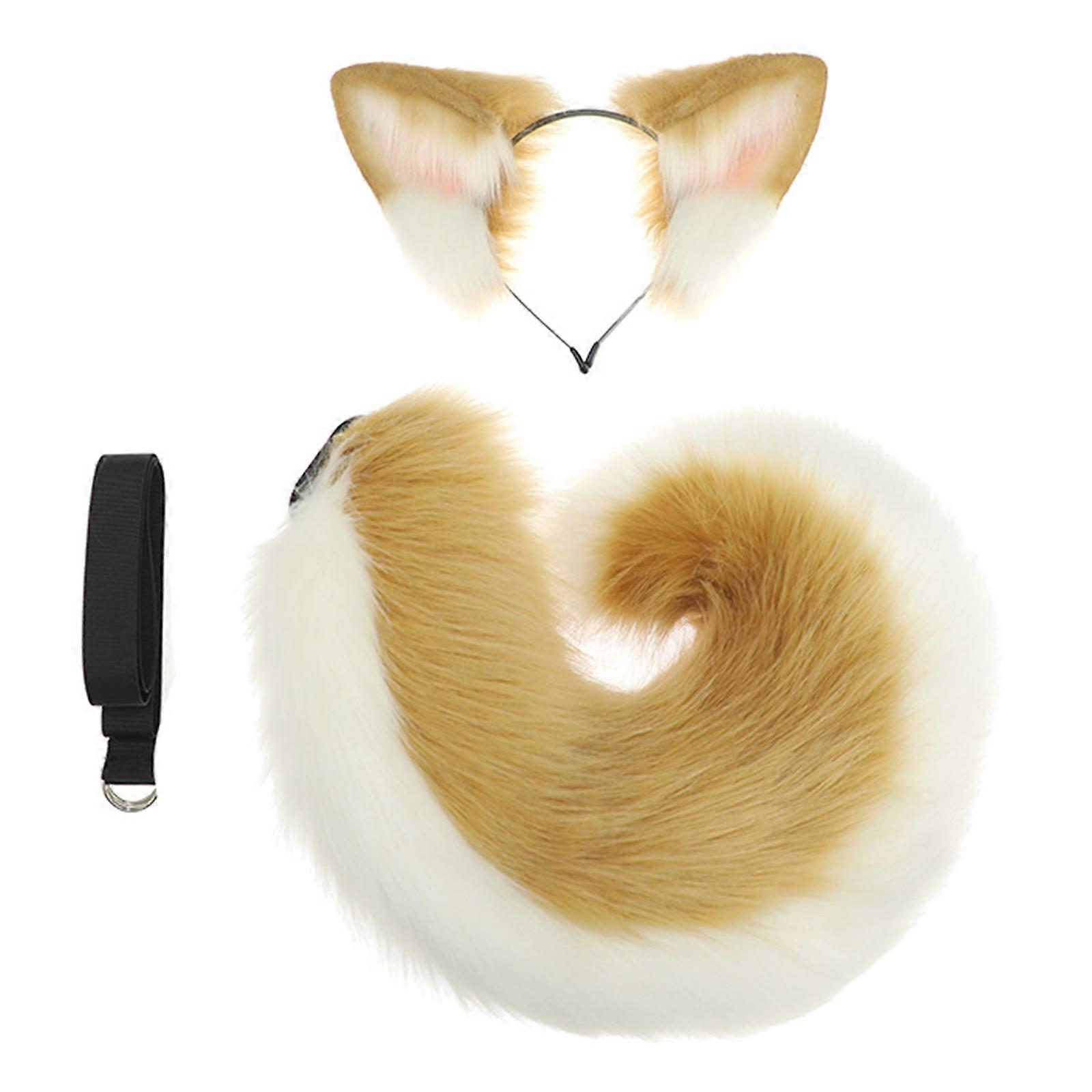 1/2Pcs Faux Furs Animal Tail Dog Tail Dog Ears Headband Halloween Cosplay Costume Dog Ears Hairband Dog Tail Dog Costumes camel white set