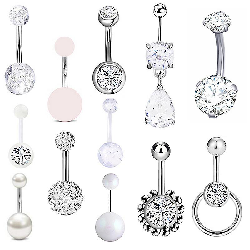 12pcs/set Crystal Belly Button Ring Fashion Woman Navel Body Piercing Jewelry