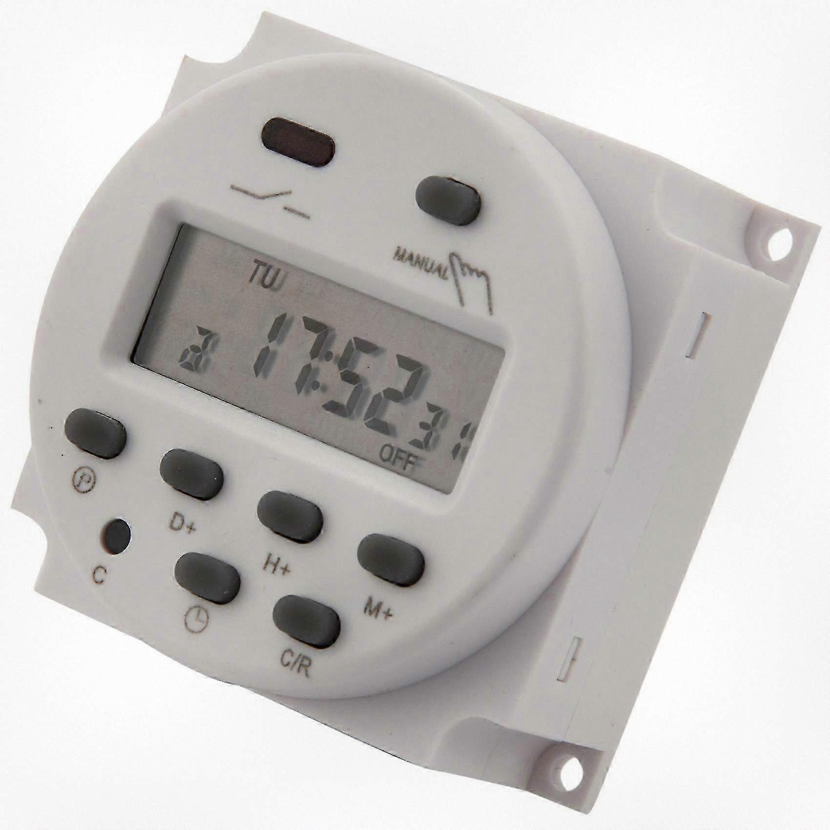 Product Name: Programmable Timer Rated Control Voltage: DC 12V Contact Capacity: 16A(8)A, 250V AC Hysteresis: less than or equal to 2 sec/day(25 C) ON/OFF Operation: 17 ON/OFF Power Consumption: 7.5VA(max.) Display: LCD Minimum Interval: 1 minute Switching Contact: 1 changeover switch Ambient Temperature: -10~+40C Ambient Humidity: 35-85%RH Mounting Hole Diameter: 3mm / 0.12" Overall Size(.): 62 x 60 x 33mm / 2.4 inch x 2.36 inch x 1.3 inch(L*W*H) Material: Plastic, Electronic Parts Panel mounted, advanced pre-setting one week in advance, digital electronic timer switch with daily programs, repeat programs with 17 on/off settings and manual override, auto timer error correction �� 30 sec, weekly. The program timer can automatically switch on and off various types of electrical equipment according to a fixed schedule. Widely used for controlling lamps, water heaters, sprayers, bottlers, preheaters, agricultural facilities, broadcasting equipment, home appliances, etc. Net Weight: 68g Package Contents: 1 x Programmable Timer 1 x Manual Only the above package content, other products are not included. Note: Light and different displays may cause the color of the item in the picture to differ slightly from the actual item. The measurement allowed error is +/- 1-3cm.