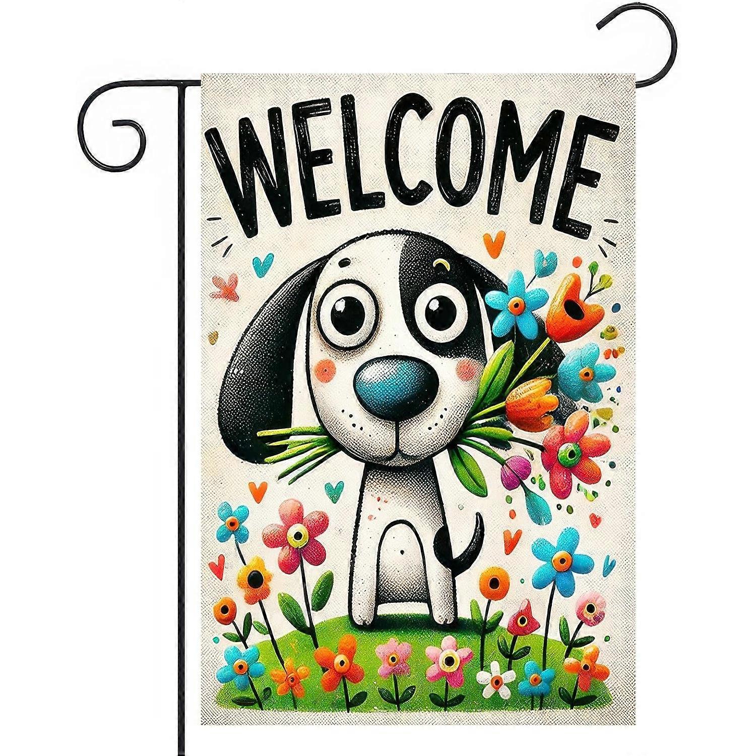 12x18 Inch Double - Sided Puppy Garden Flag, Cute Cartoon Dog Floral Spring Summer Decor