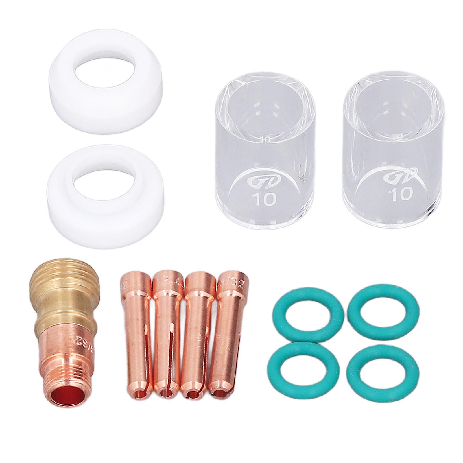13Pcs TIG Welding Accessory Set Glass Cup Connector Electrode Clamp PTFE Front Cover for WP 17 18 26