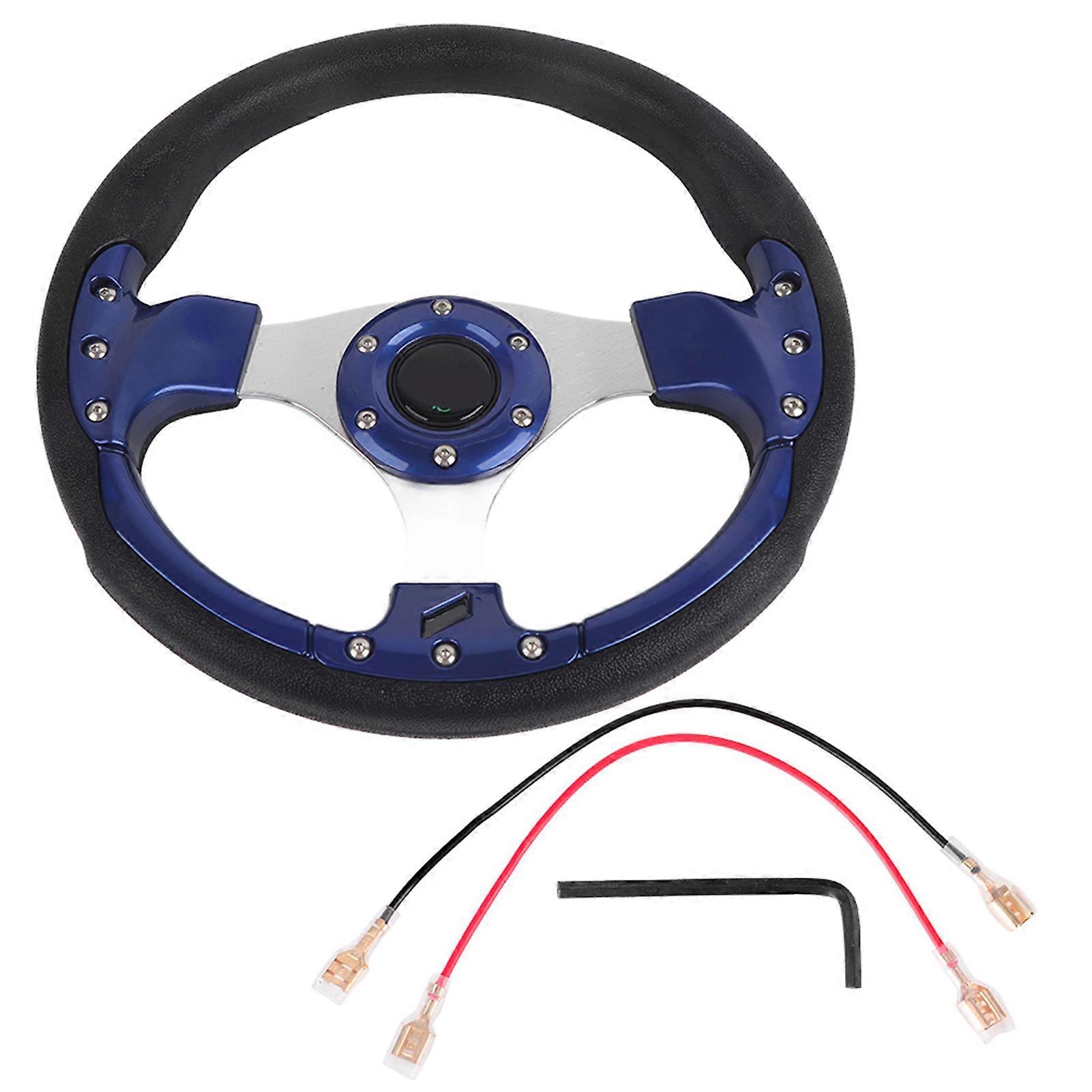 Feature 1, Wrapped with high quality PU leather material for comfortable hand feeling. 2, Specially designed to manipulate the direction of driving, great for isolating from the violent vibration of the road. 3, Professional manufacturing to achieve maximum lightness for more flexible operation. 4, A good steering wheel system also brings the driver a feeling of intimacy with the road. 5, Cool and stylish, add up highlight for appearance and style, universally fit for most vehicles.Features: Wrapped with high quality PU leather material for comfortable hand feeling. Specially designed to manipulate the direction of driving, great for isolating from the violent vibration of the road. Professional manufacturing to achieve maximum lightness for more flexible operation. A good steering wheel system also brings the driver a feeling of intimacy with the road. Cool and stylish, add up highlight for appearance and style, universally fit for most vehicles. Specifications: Condition: Brand New Material: PU + PVC Color: Blue Size: Approx.320mm/13in Fitment: Universal Package List: 1 * Steering Wheel 2 * Horn Wire 1 * Wrench Note:Please note that the new type and old type of this product will be sent randomly, and make sure you will not mind before ordering.