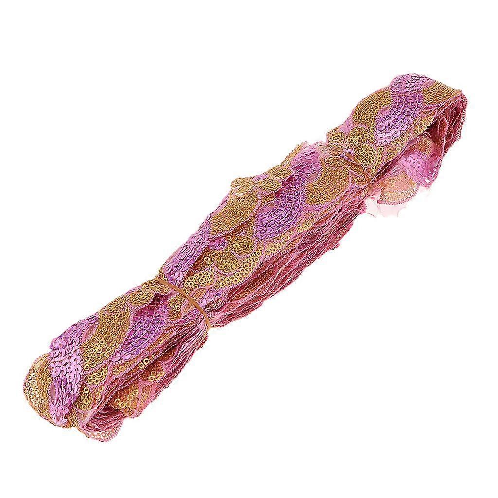 13m 35mm Embroidered Sequin Lace Trims Ribbon Fabric DIY pink gold
