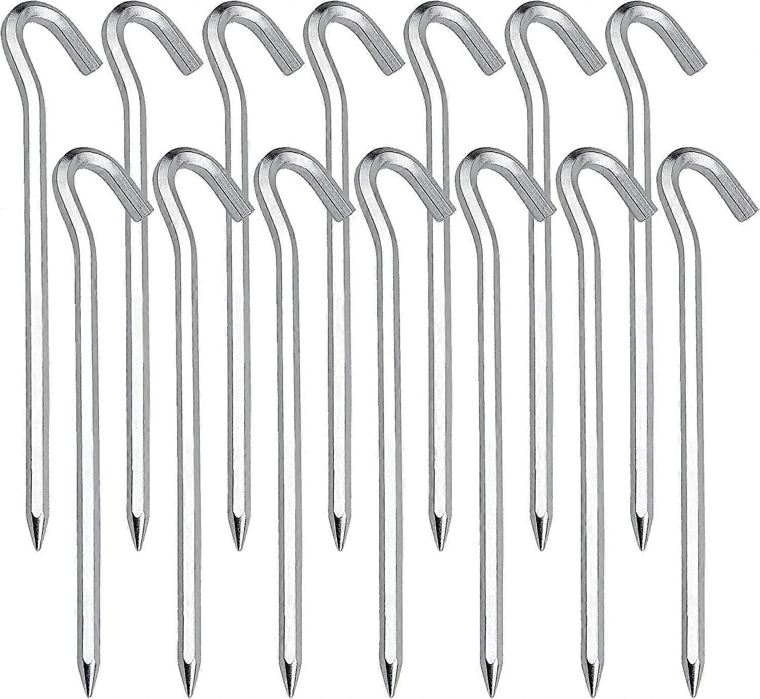 14 Pcs Tent Pegs Stakes Nail Hooks 6 x 180mm Heavy Duty Metal Trampoline Pegs Galvanised Garden Pegs