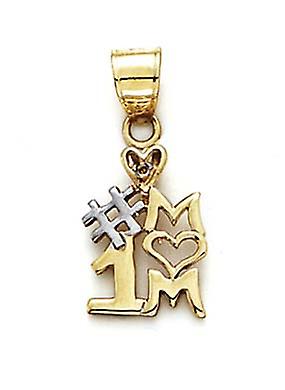 14k Two Tone Gold Number One Mom Diamond Pendant Necklace-Pendant for Women - .01 dwt