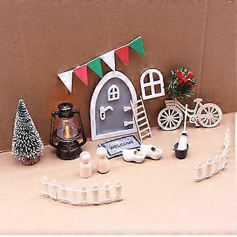 14PC Dollhouse Miniature Christmas Tree Elf Gate Model Scene Props Ornaments Toy