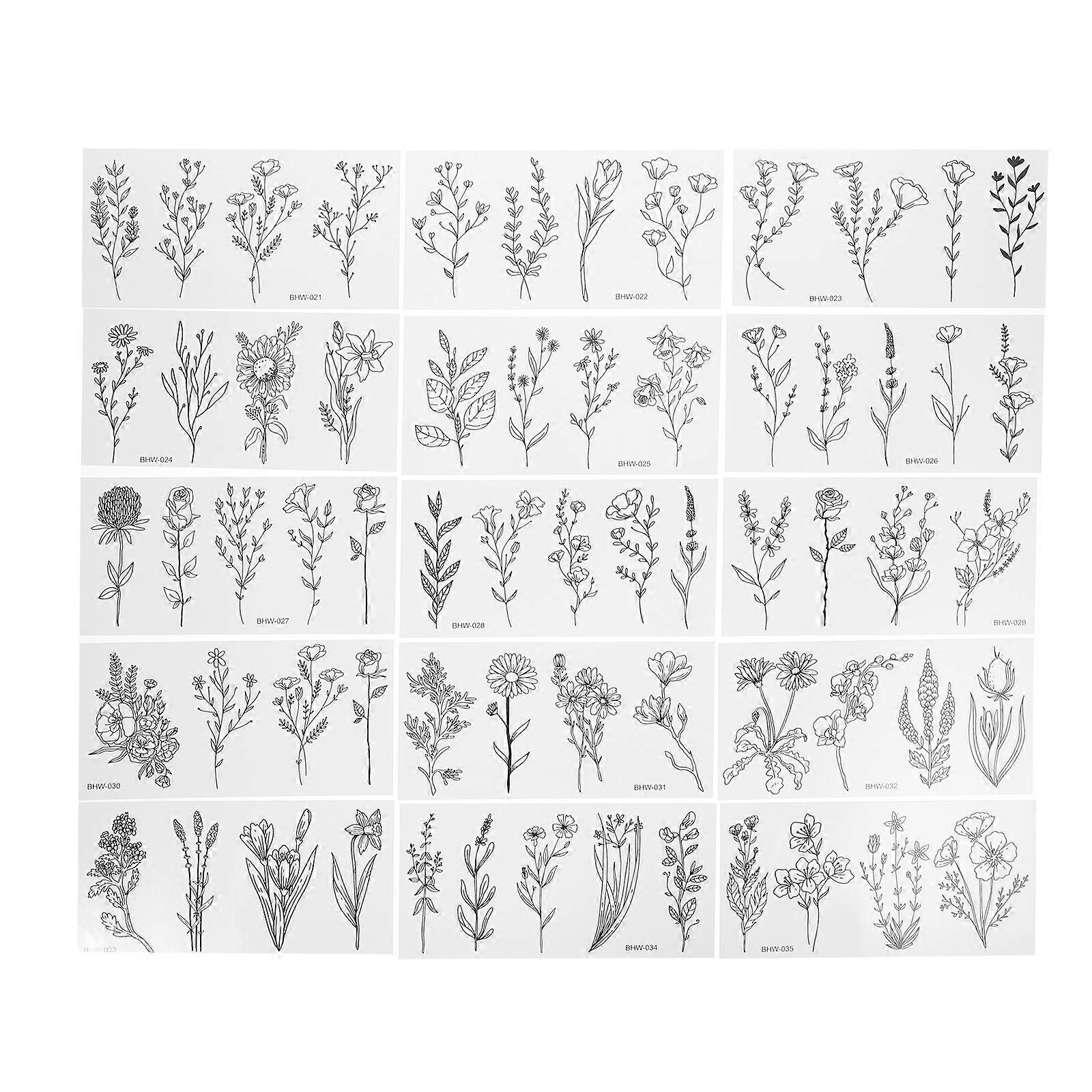 15 Sheets Small Flower Branch Temporary Tattoos Transfer Fake Tattoos Stickers
