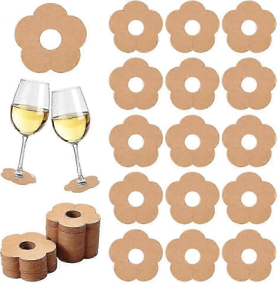 150 Pcs Paper Wine Glass Markers 2.7x2.6 Blank Flower Stemware Drink Name Tag BurlyWood/White Color Disposable Wine Tag Drink Charm DIY Identification