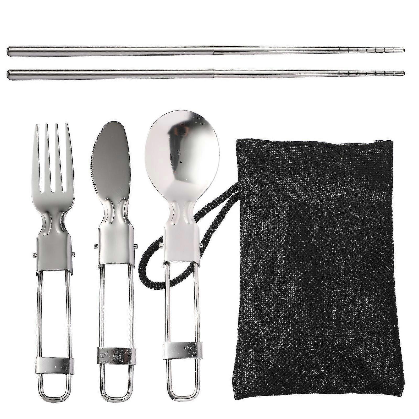 15.5X2.3cm Silver 1 Set Outdoor Portable Camping Cutlery Stainless Steel Foldable Tableware Dt2461