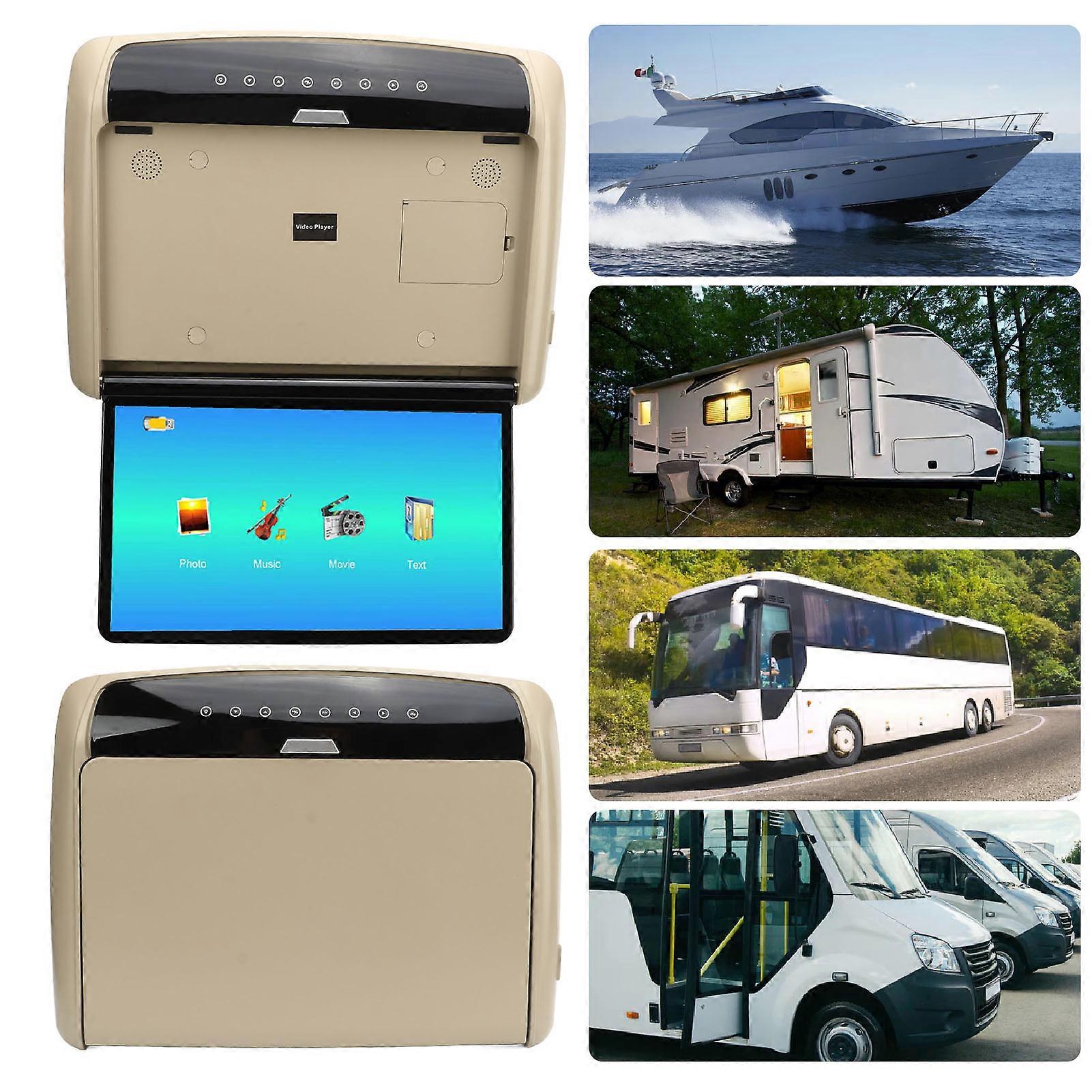 15.6in Car Overhead Roof Mounted Monitor IPS HD Screen MP5 Player Ultra Thin Flip Down Multimedia Player for Commercial Vehicle RV Beige Item Type: Car Overhead PlayerMaterial: ABS, metalScreen Type: IPS HD screen Resolution: 1920x1080 Function: Support USB TF (not included) HD Multimedia Interface input, 1080P HD video, built in speaker, with 16 color ambient light, support touch button and remote control operation, display folding 0-170° any angle Input Port: Support 2 AV inputs, 1 HD Multimedia Interface input, 1 left and right tone input Output: Support 1 left and right channel output Language: Support Chinese, English, Japanese, Korean and omore Video Format: Support MPEG, MP4, 3GP, AVI, MKV, ASF, DivX, FLV, ts and other formats of video Audio Format: Support AVI, MKV, TS, TP, DAT, VOB, MPG, MEG, wav, mp3, 3GPP, mp3, mov, and other encoding formats of audio files Application: Applicable for cars, commercial vehicles, RVs, caravans, buses, ships, yachts and other medium and large means of transportation Remote Control Battery: CR2025, rated capacitance: 165mAh (included)