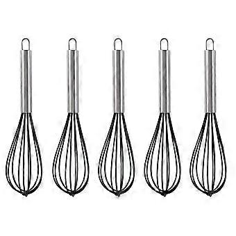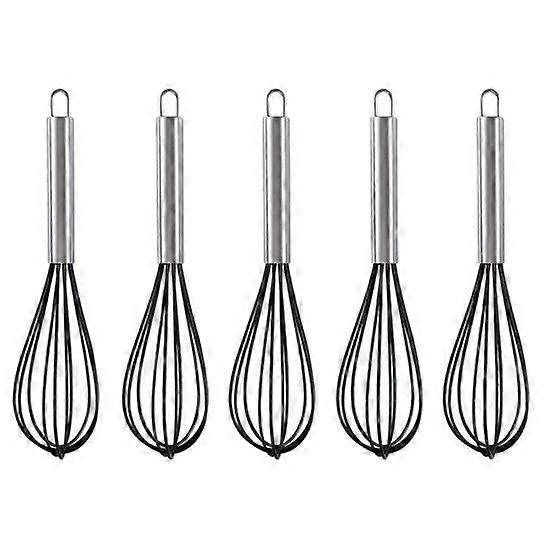 1/5Pcs Silicone Whisk Stainless Steel Handle Dishwasher Safe Ergonomic Design with Hanging Hole Egg Beater Kitchen Supplies