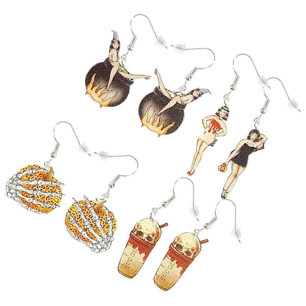 16 Pairs Halloween Dangle Earrings Women Costume Accessories Ideal For Cosplay Party Acrylic Alloy Material Stunning Design