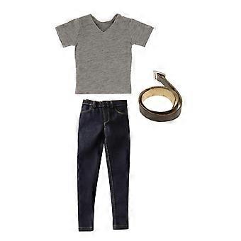 1/6th Gray T-shirt + Jeans + Belt Set Clothes For 12in. Male Action Figure
