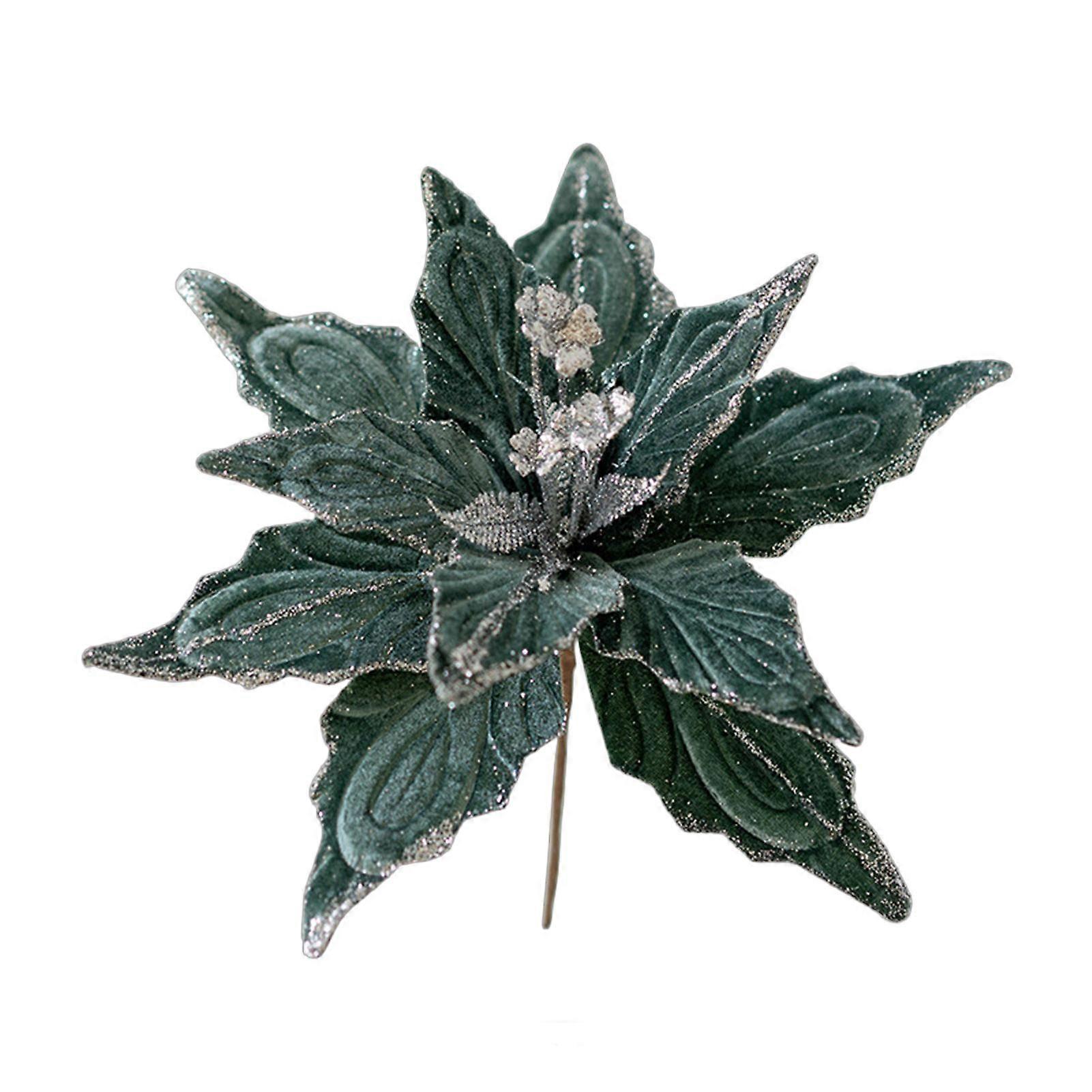 1/6Pcs Christmas Artificial Flowers Soft Glitter Powder Poinsettia Fake Flowers New Year Party Decoration Floral Arrangements