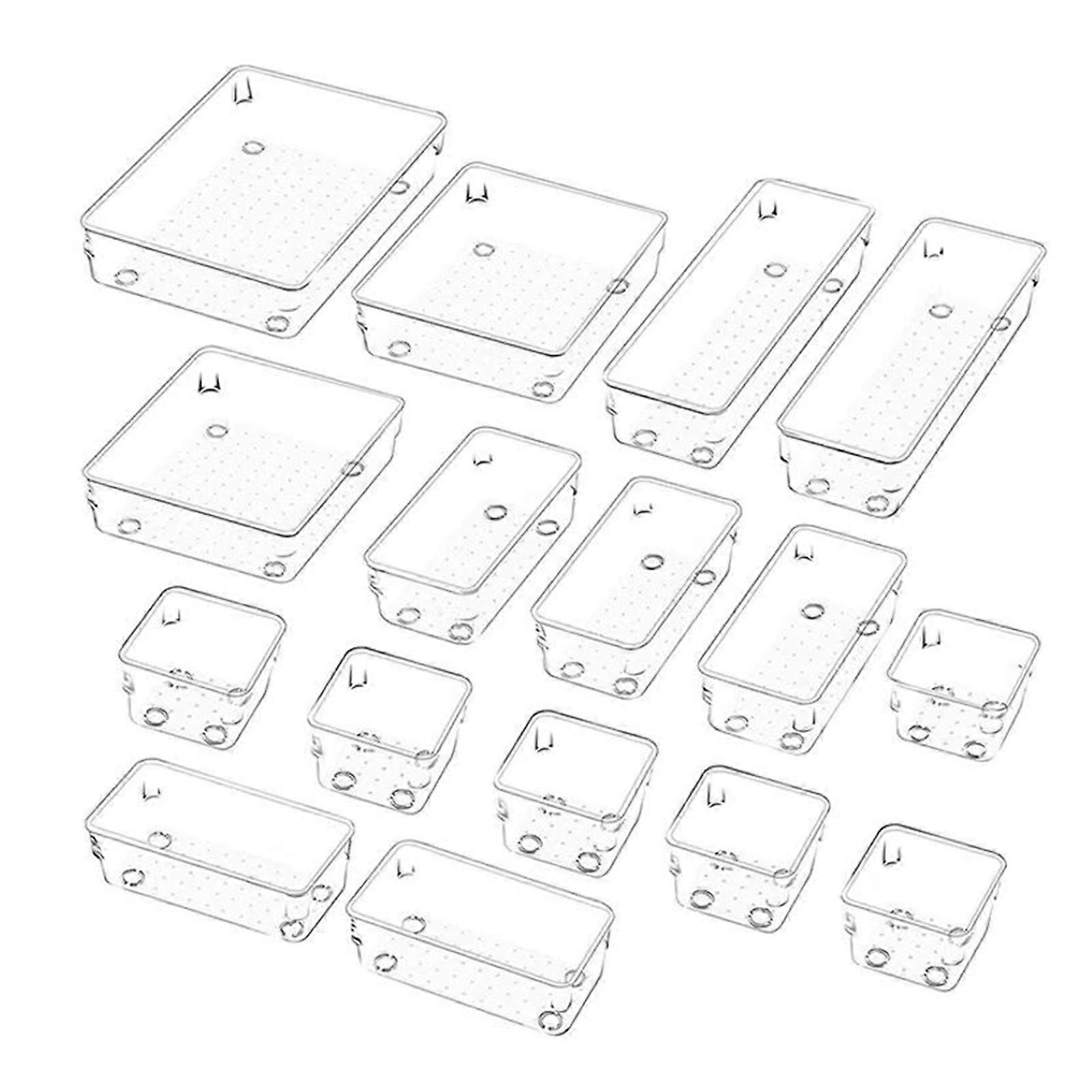 16Pcs Clear Drawer Organiser Tray Set Makeup Tray Desk Drawer Dividers Organiser Bin for Kitchen Bedroom Bathroom Office Multicolor