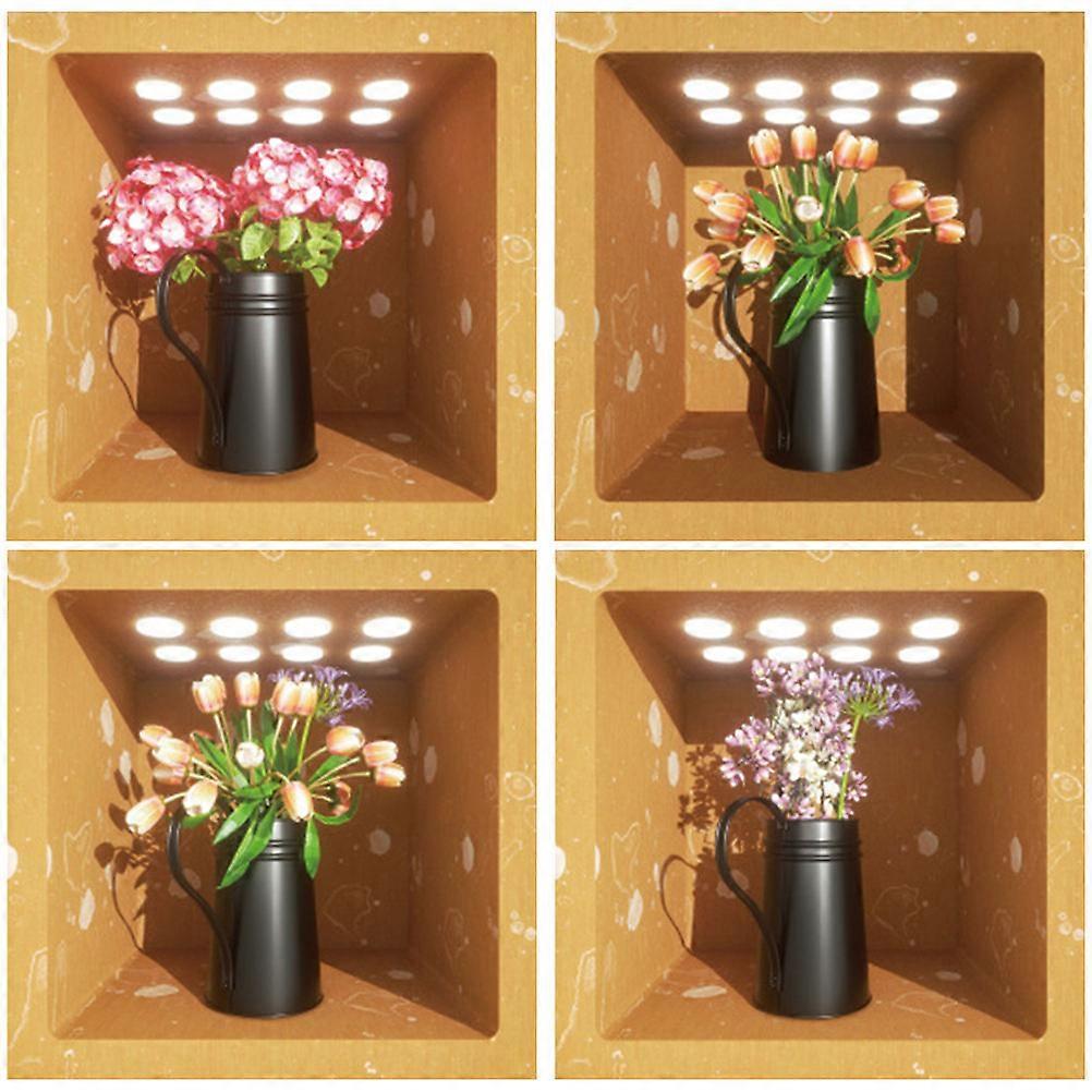 16 Pcs 3D Floral Wall Sticker Decorative Design Suitable For Living Room Bedroom Square Style