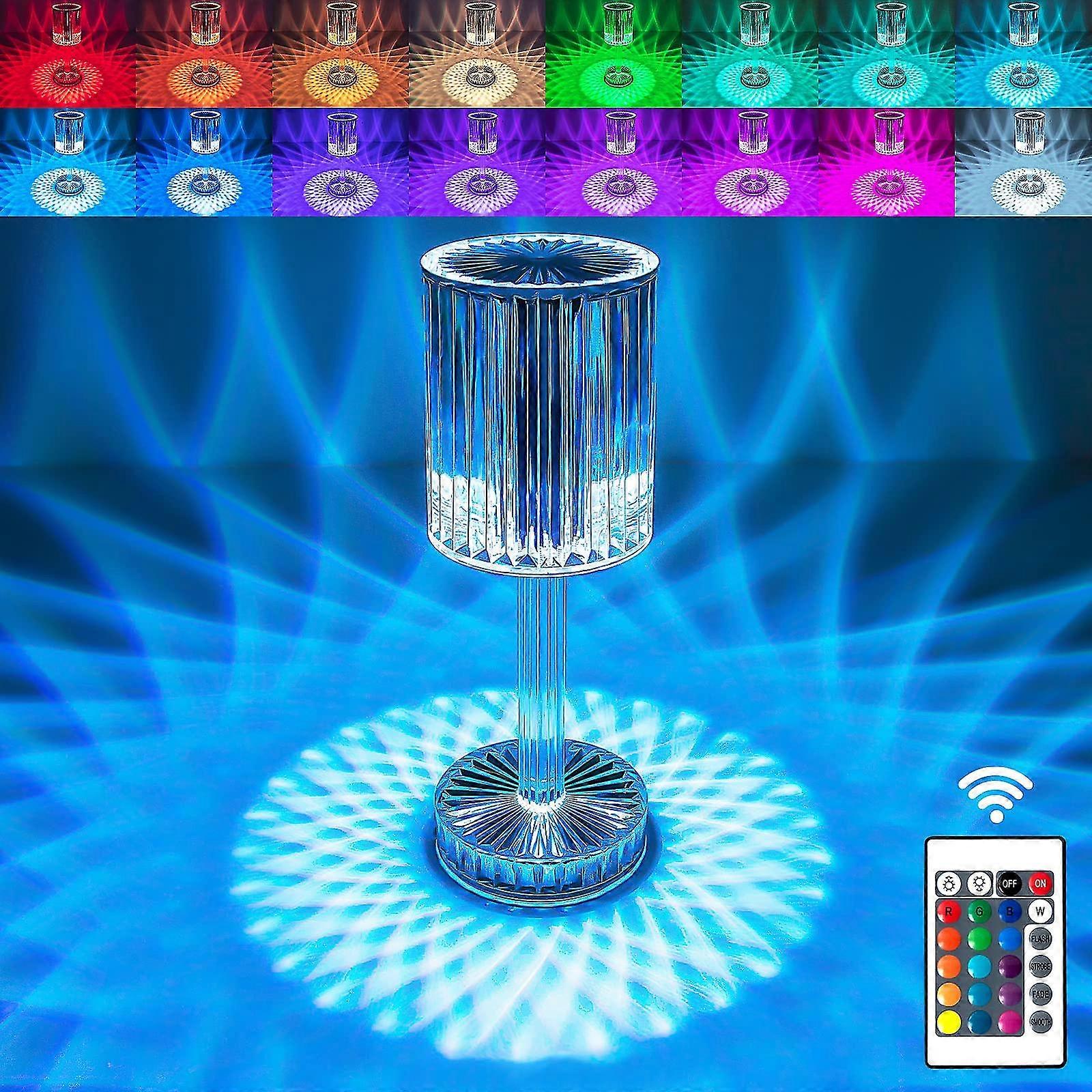 16 Colors Changing Cordless Crystal Lamp, 3d Diamond Acrylic Small Table Lamp With Remote Control, Rgb Touch Light, Bedside Nightstand Lamp For Living