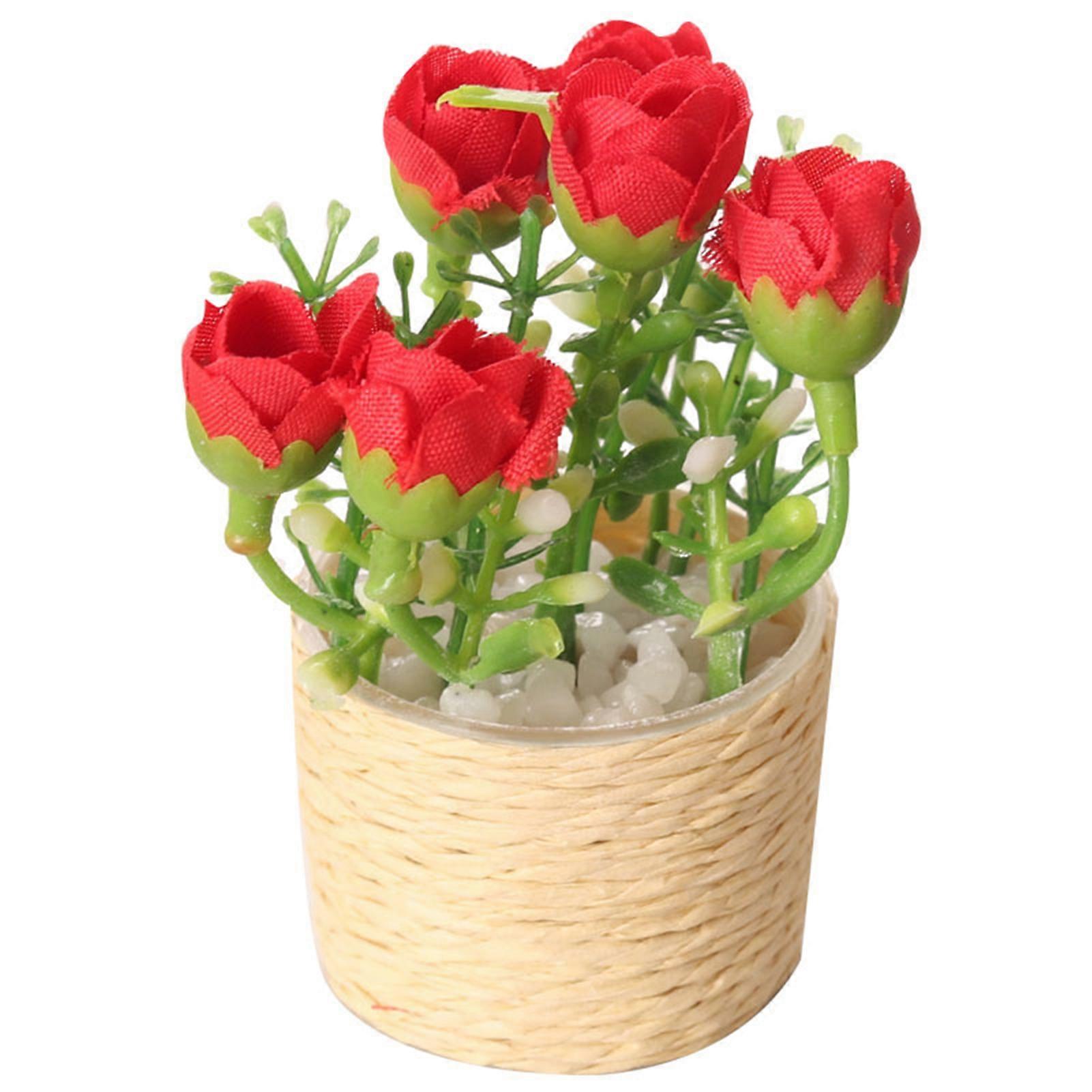 1:6 Dollhouse Flower Vivid Appearance Anti-fading PVC Miniature Simulated Rose Potted Plant Ornament Photography Prop