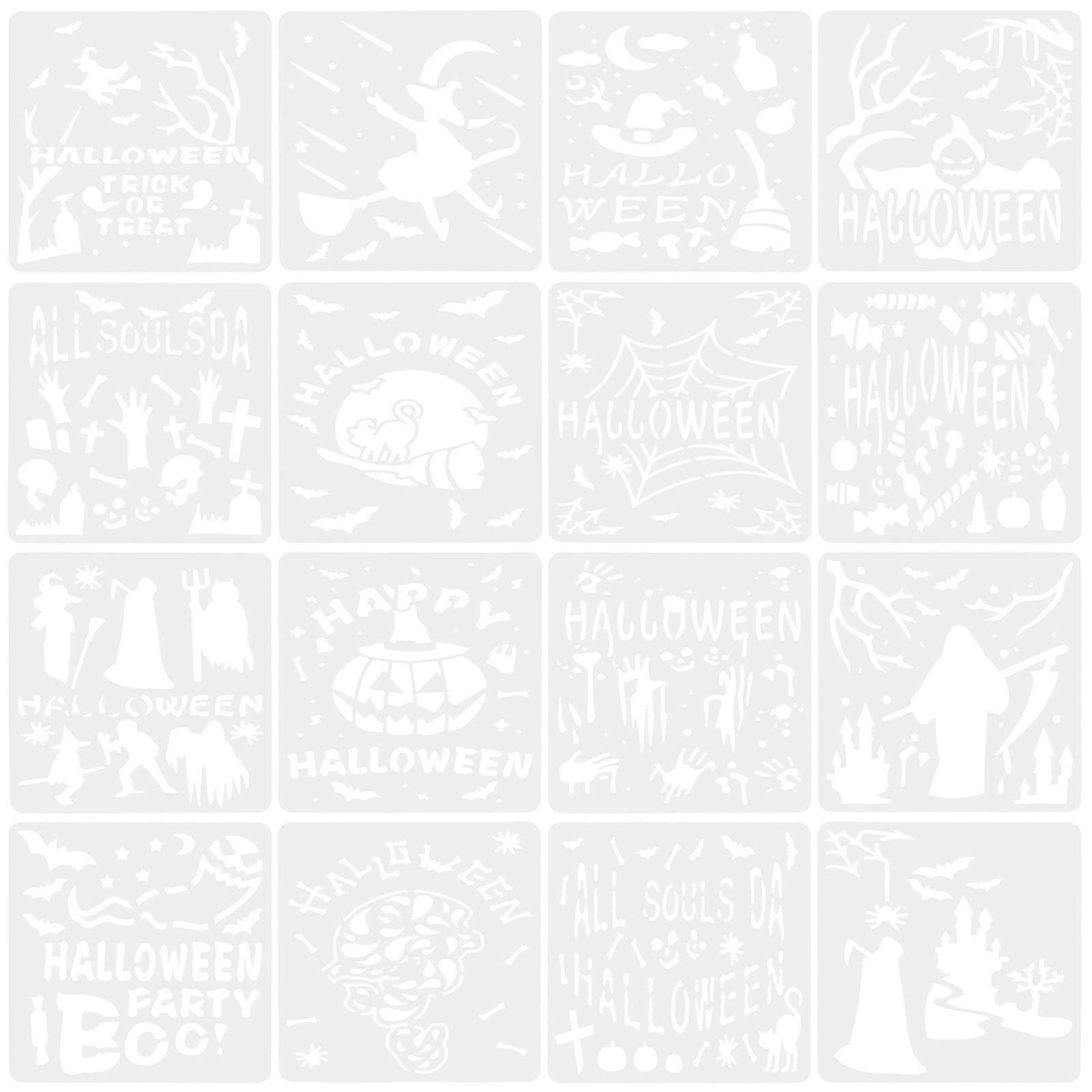 16pcs Halloween Painting Template Drawing Template Hollow DIY Painting Stencils