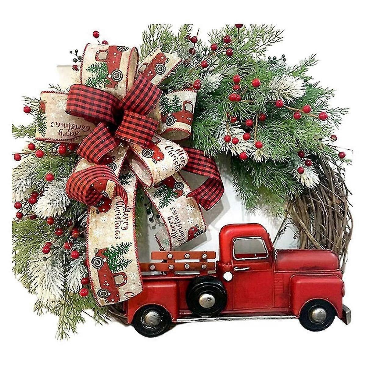 High-Quality Material: Crafted with top- plastic, ensuring durability and . This Christmas dcor perseveres throughout the festive season and lasts for years to come. A worthwhile addition to your holiday decorations. Versatile Festive Dcor: Embellished with red trucks and bows, this Christmas wreath brings a truly festive to your space. Perfect for decorating your Christmas tree, it also serves as an eye-catching decorative elements for weddings, parties, and shops. Perfectly Sized: This wreath features a stylish and unique design . Its size makes it an attractive centrepiece, adding a distinctive touch to your holiday decorations. A reveal of superior craftsmanship and high quality. Option: Our exquisite Christmas wreath makes an for friends and family. It not only add to their homes but also the spirit of togetherness and love during this festive season. Colour:As Shown Material:plastic Size:Width: about 45cm Package Contents: 1 x Christmas Wreath Only the above package content, other products are not included. Note: Light reflection and different displays may cause the color of the item in the picture a little different from the real thing. The measurement allowed error is +/- 1-3cm.