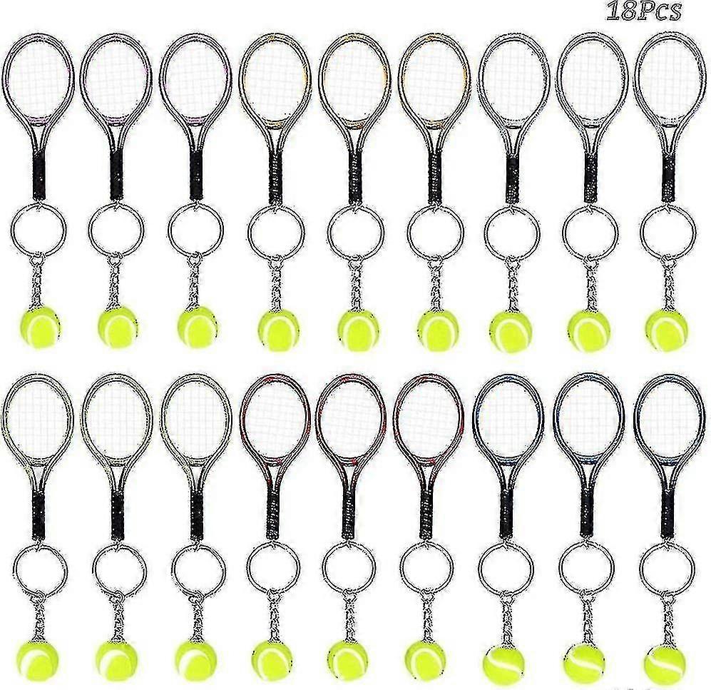 18 Pieces Mini Tennis Ball Racket Pendant Keychain Metal Gift Keyring