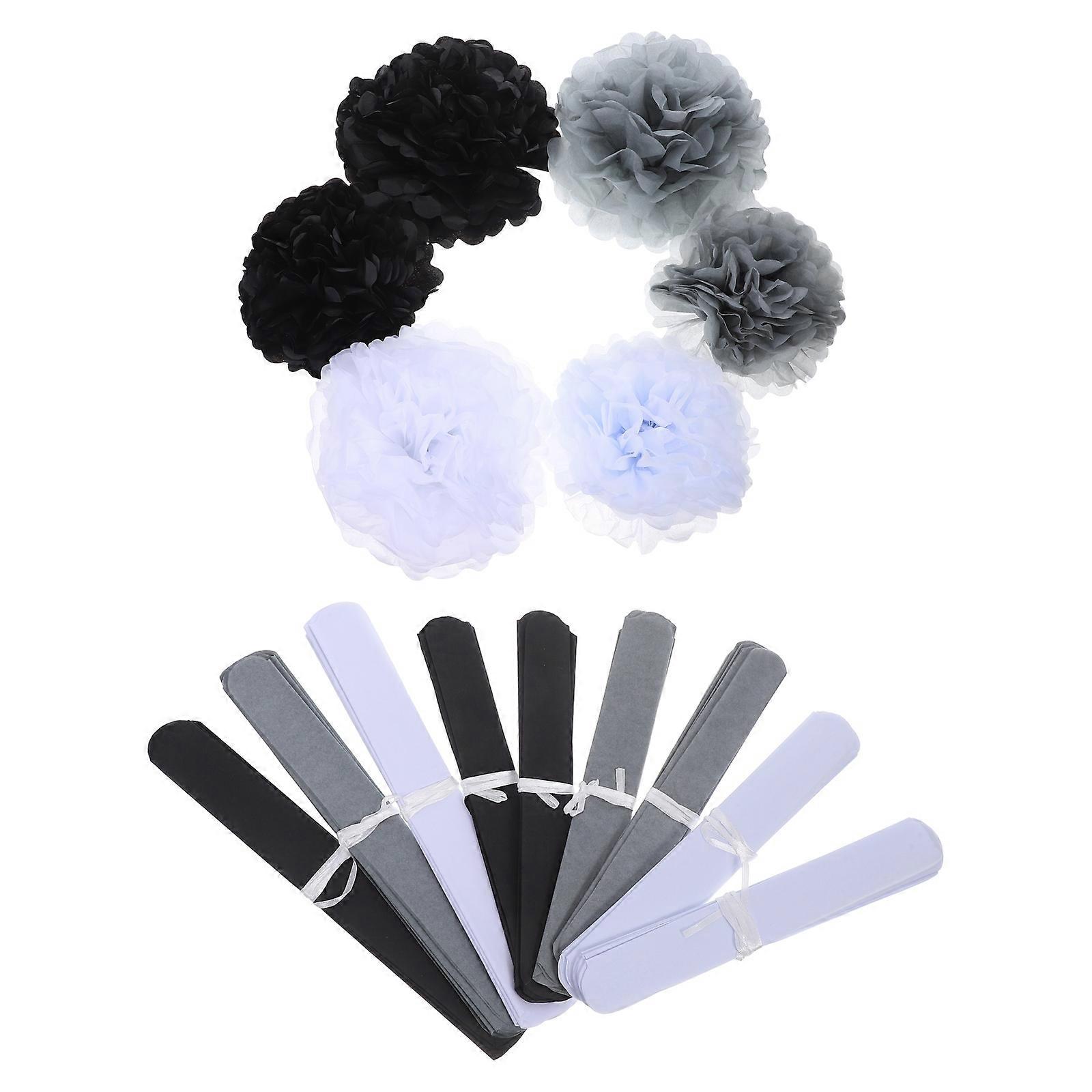 18pcs Tissue Paper Pom Poms Hanging Flower Balls Wedding Birthday Party Decorations Reusable Elegant White Black Gray Floral Balls For Outdoor Indoor
